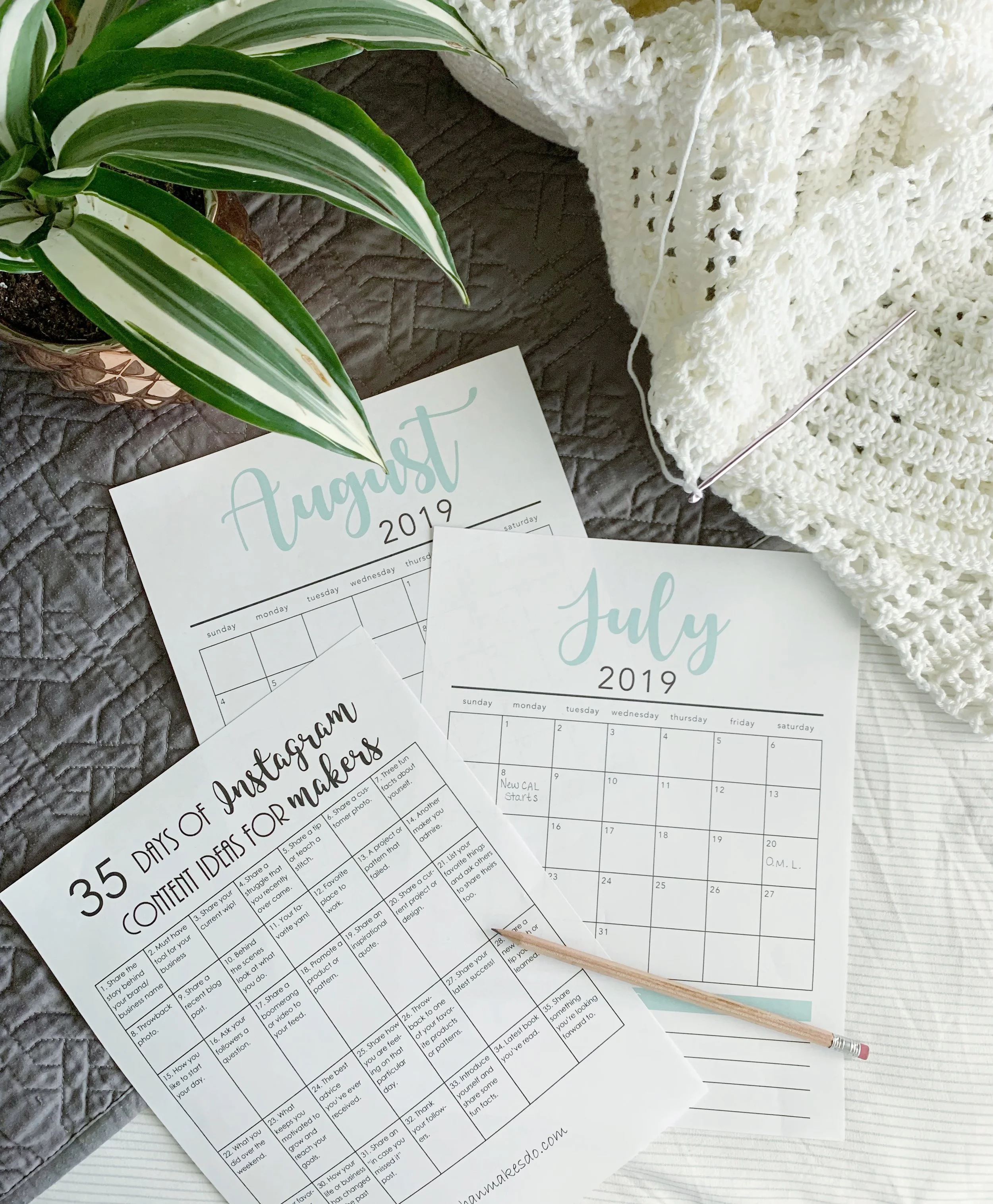 Content calendars are life savers when it comes to using Instagram to help support your business. With a little bit of planning you can create a whole month’s worth of content in just one day! The best thing is that content calendars will work for many aspects of your business. Use them to plan out your blog posts, pattern releases, shop updates and social media accounts. Today I want to focus on creating one for Instagram. Although this is geared towards maker business accounts the concept can be used for anyone. I’ll walk you through exactly how I create my content calendar each month and I’ve also included a free content calendar idea sheet that you can print out and use to help fill in those gaps on days where you’re drawing a complete blank.