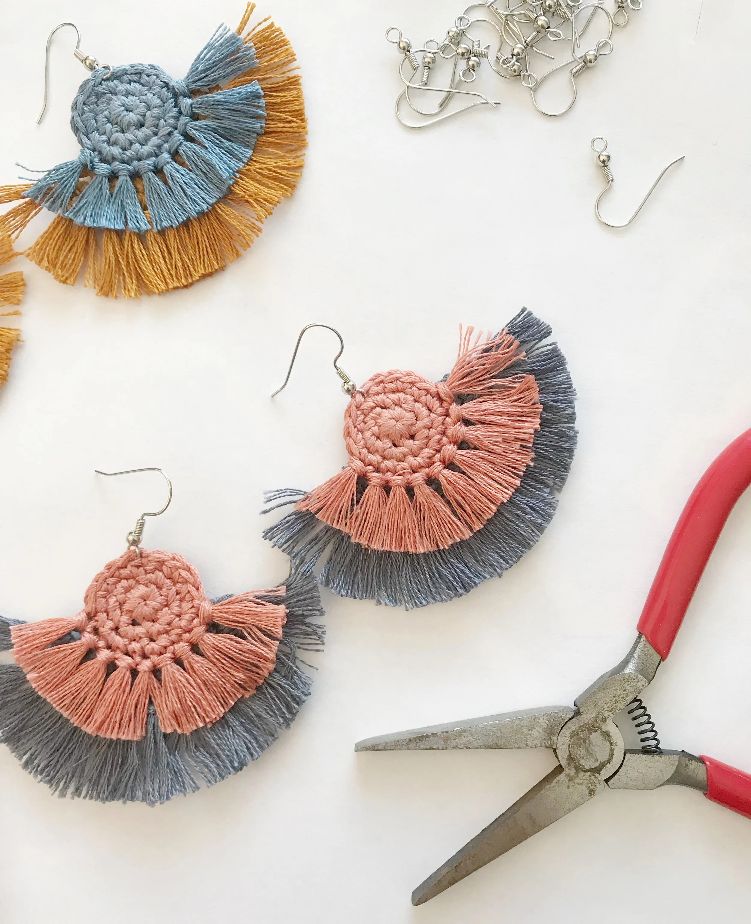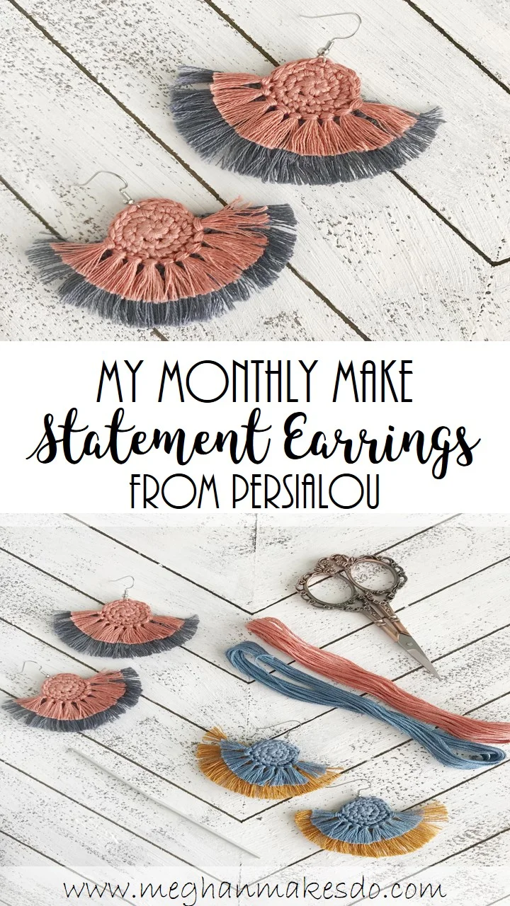 I don't know about you, but August was a super busy month. I've been working on a ton of patterns and even squeezed in a pattern test for another maker. With a full schedule for the month I knew I needed a quick monthly make and wanted to do something really fun. What could be more fun than these crochet fringe statement earrings from Alexis at Persia Lou?
