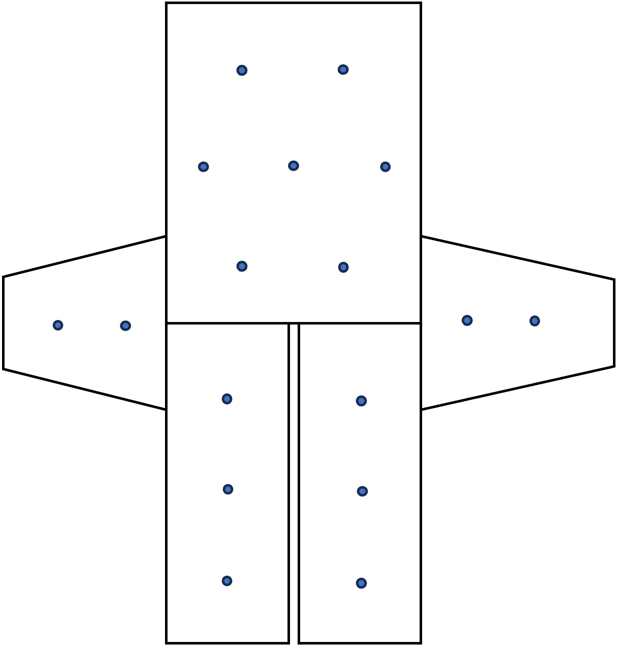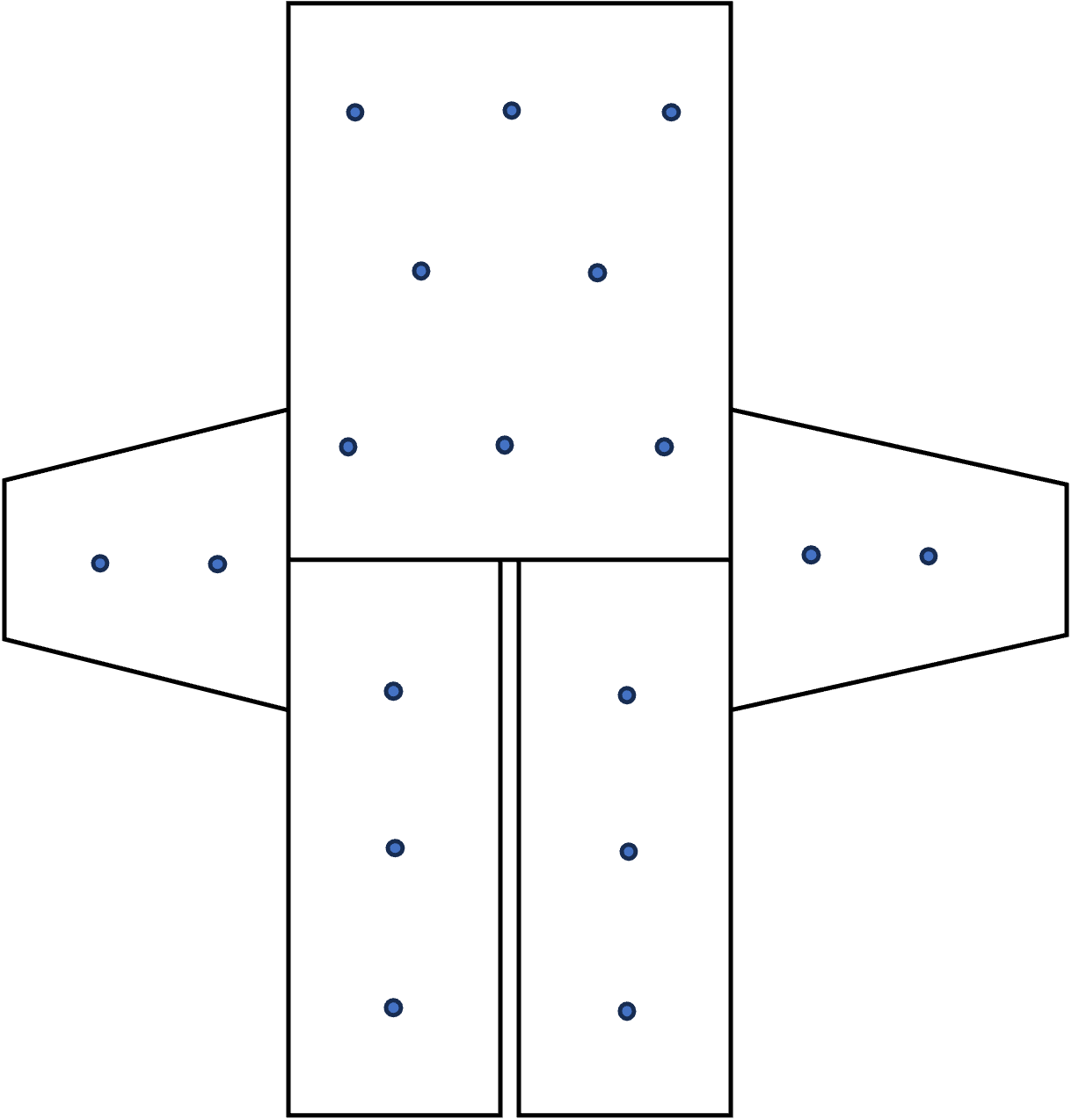 Dots indicate placement of bows for sizes XL(2X, 3X, 4X, 5X)