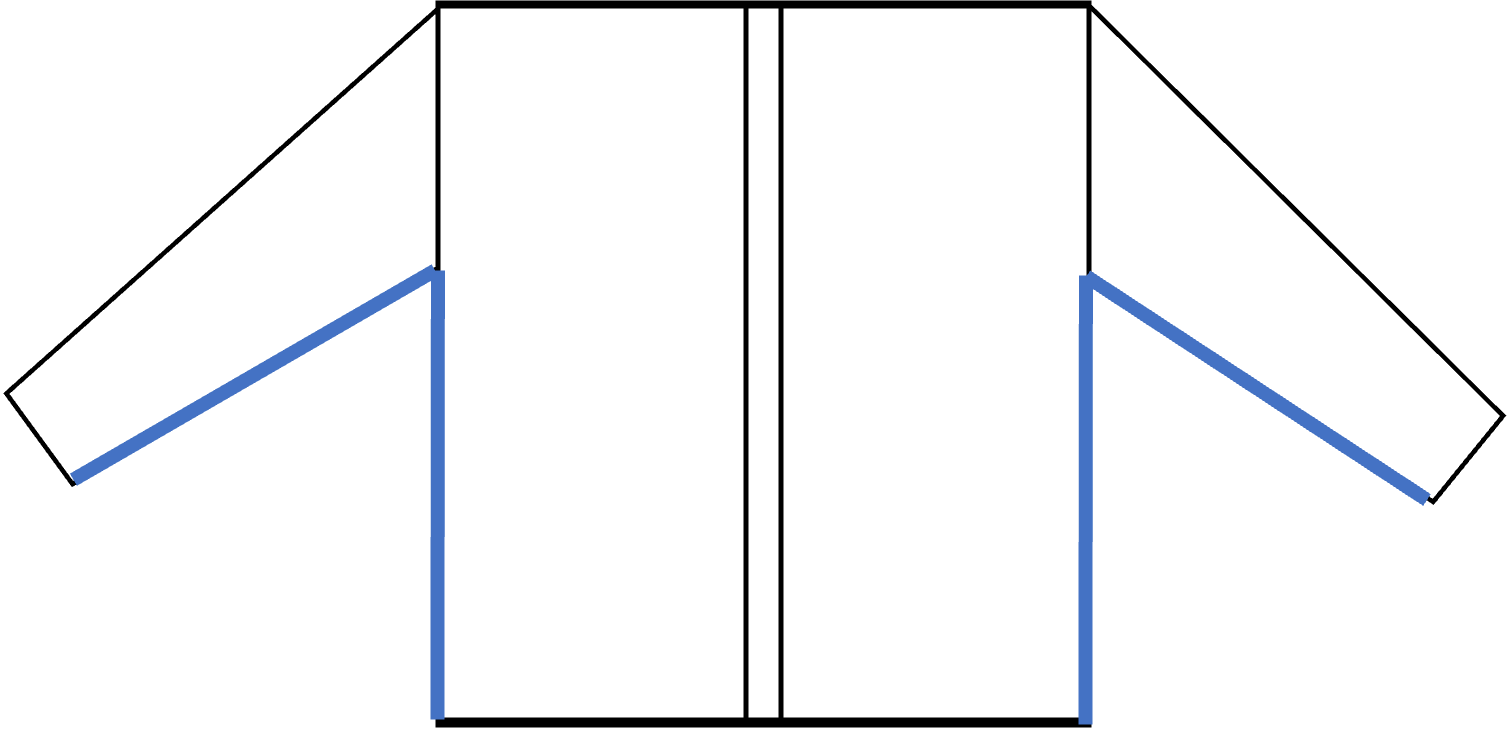 Fold cardigan so that the back and front panels are on top of each other. Then seam the sleeves from the underarm to the cuff. Seam the sides from the underarm down to the bottom.