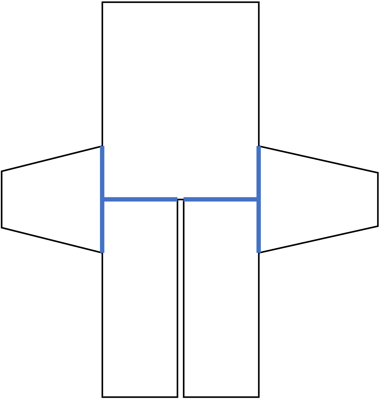 Lay Back Panel and two Front Panels together at the shoulders with RS facing each other. Using your preferred seaming method attach front panels to back panel. There will be 31(35, 35, 35, 39, 39, 39, 39, 39) sts unseamed in the center of the back panel.