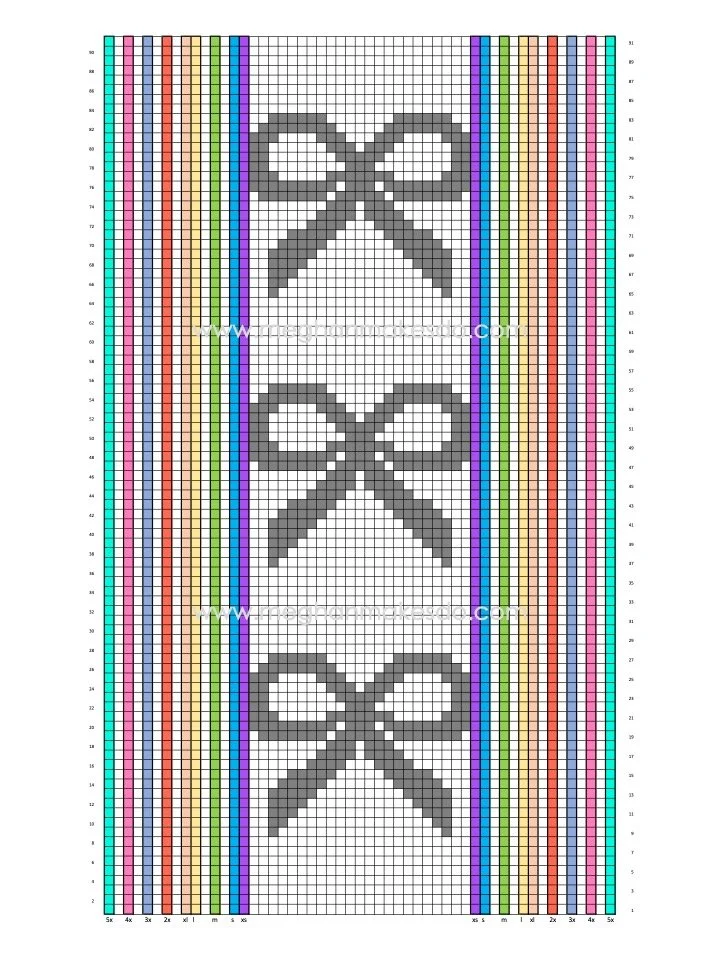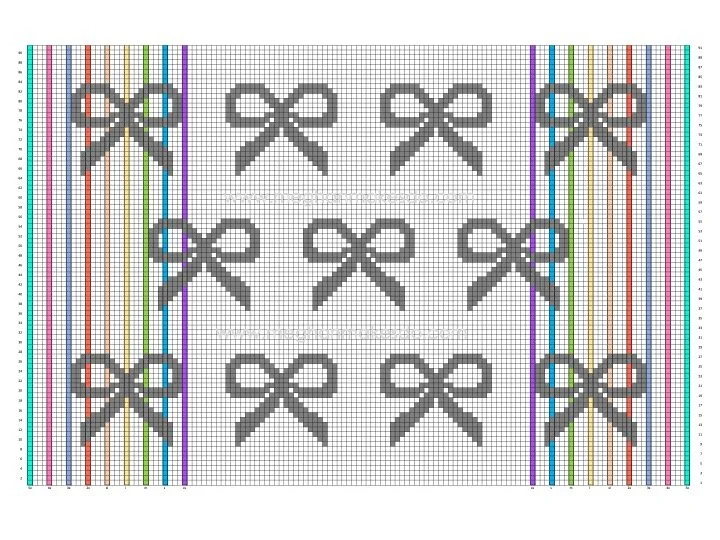 3.The bows are made using a combination of intarsia and fair isle crochet. Float the yarn on the wrong side of the panels as you go.