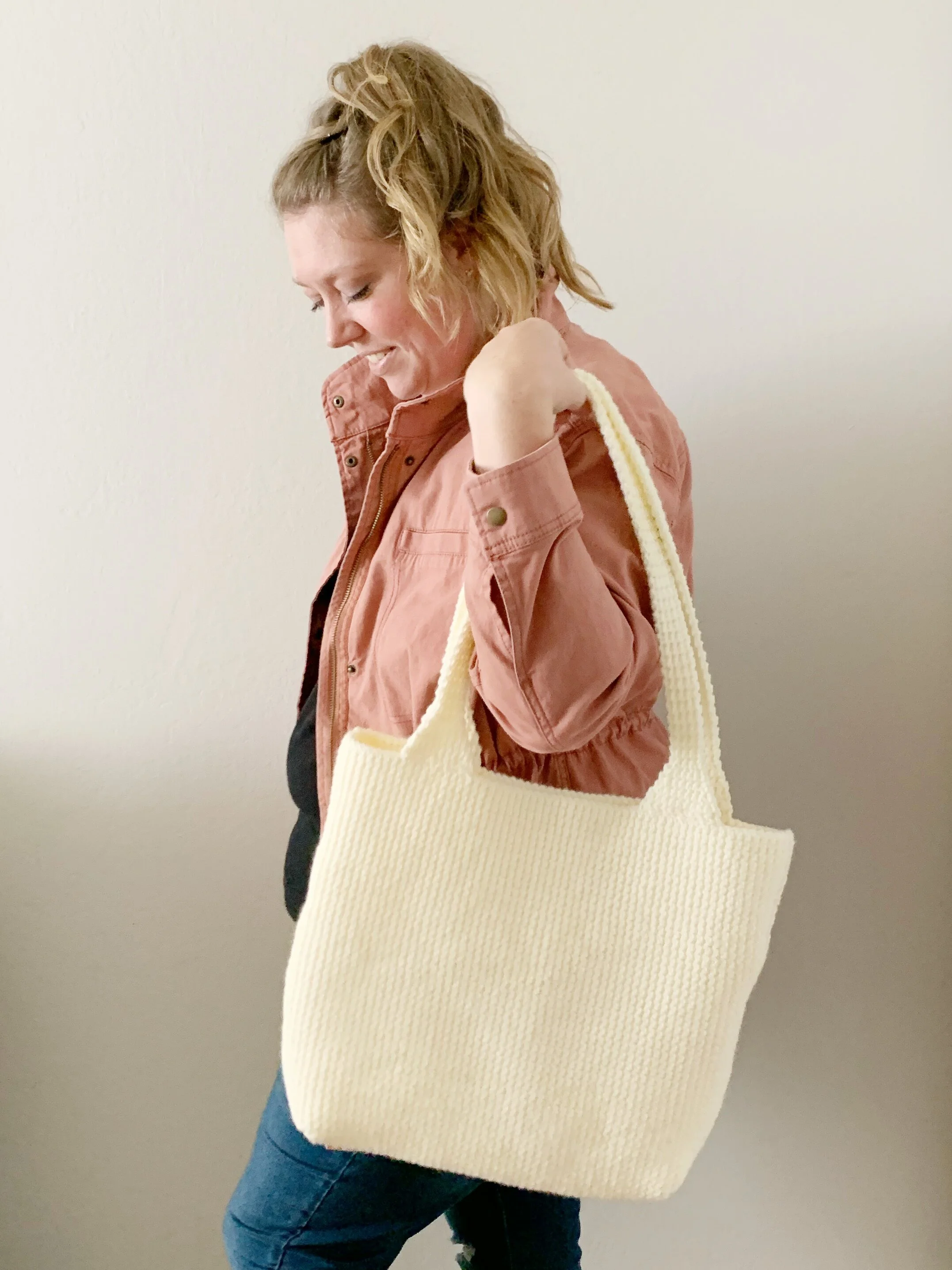 Earlier this year I was asked to design a simple tote bag for Bluprint. I had always wanted to try the thermal stitch and knew it would make the perfect tote bag. I had waited months to get this pattern out into the world and then Bluprint closed. I figured this was the perfect time to go over my pattern again and offer a second strap option and a brand new yarn option as well.