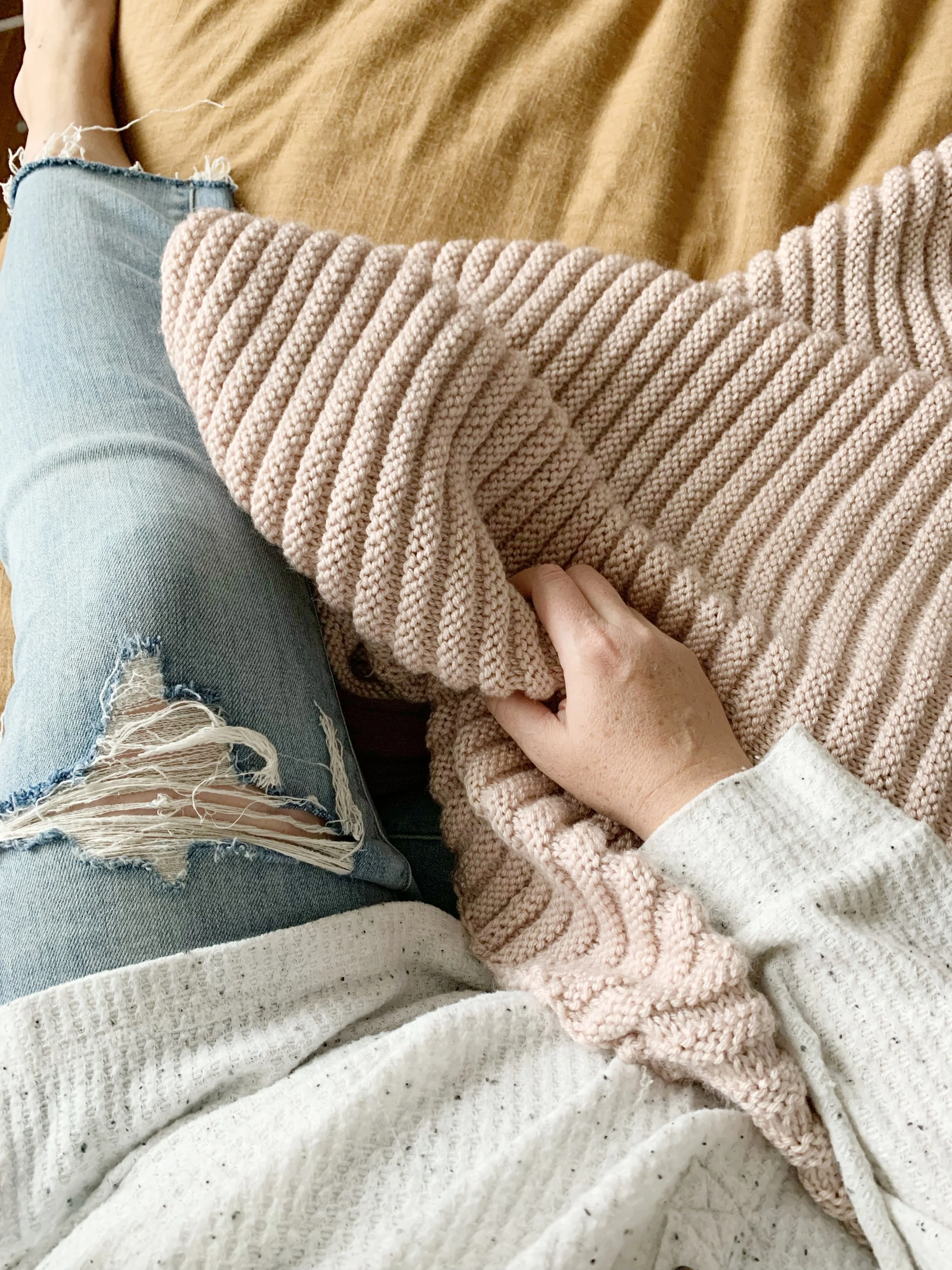 One of my favorite things about the winter is being able to snuggle up with a mindless project on the couch while binge watching my favorite shows. There is something so comforting being warm and cozy inside, while itβs chilly outside, getting lost in the simple stitches of knitting. The Maeve is that perfect project and it will quickly become your favorite winter make.