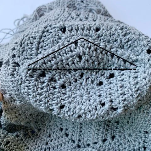 Ch 1, then work sc evenly across the raw edge of the trapezoid. (20)