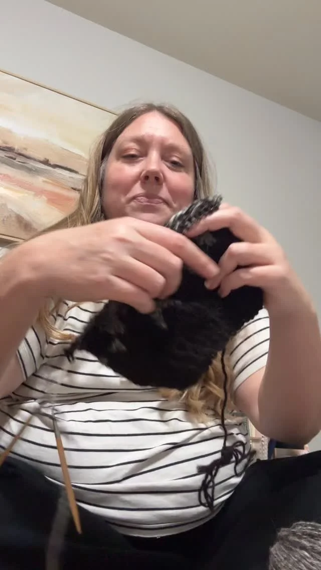 You will work the rest of the hood in two sections, starting on the right side and then attaching yarn in the center and working the left side, much like the body of the cardigan.